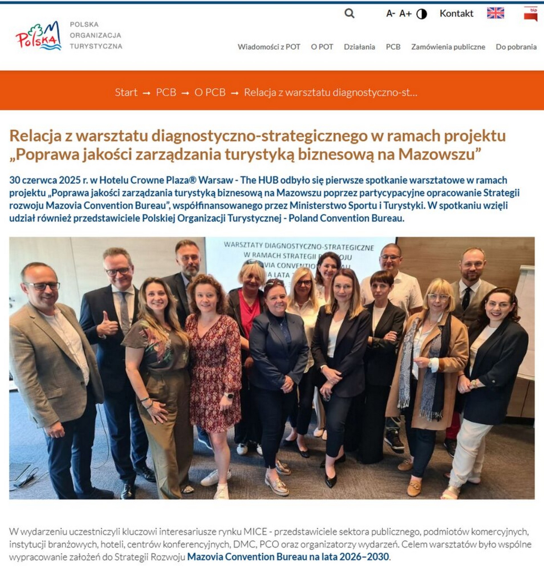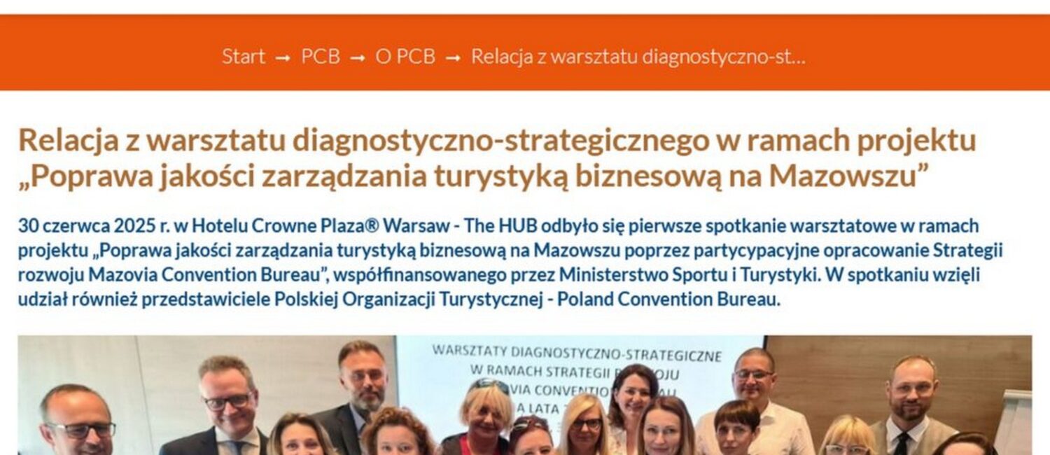 Full text of the article: https://www.pot.gov.pl/pl/pcb/news/relacja-z-warsztatu-diagnostyczno-strategicznego-w-ramach-projektu-poprawa-jakosci-zarzadzania-turystyka-biznesowa-na-mazowszu#i