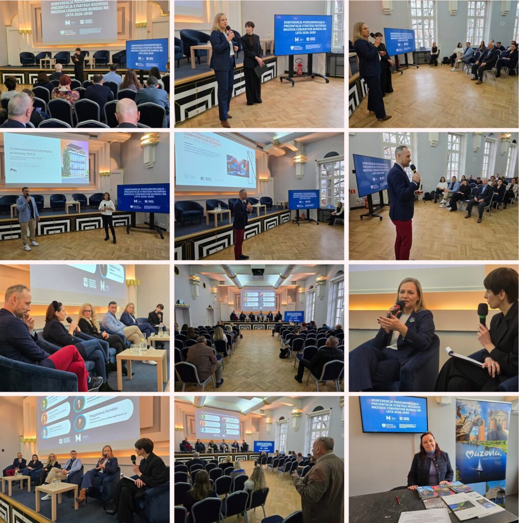 On Monday, December 1, a conference summarizing the project “Improving the quality of business tourism management in Mazovia through the participatory development of the Mazovia Convention Bureau Development Strategy” was held at the Foksal Press Center in Warsaw. During the conference, the project was summarized and the directions of MCB’s activities for 2026-2030 were presented. The event was attended by representatives of the MICE industry, public institutions, local governments, and tourism organizations.